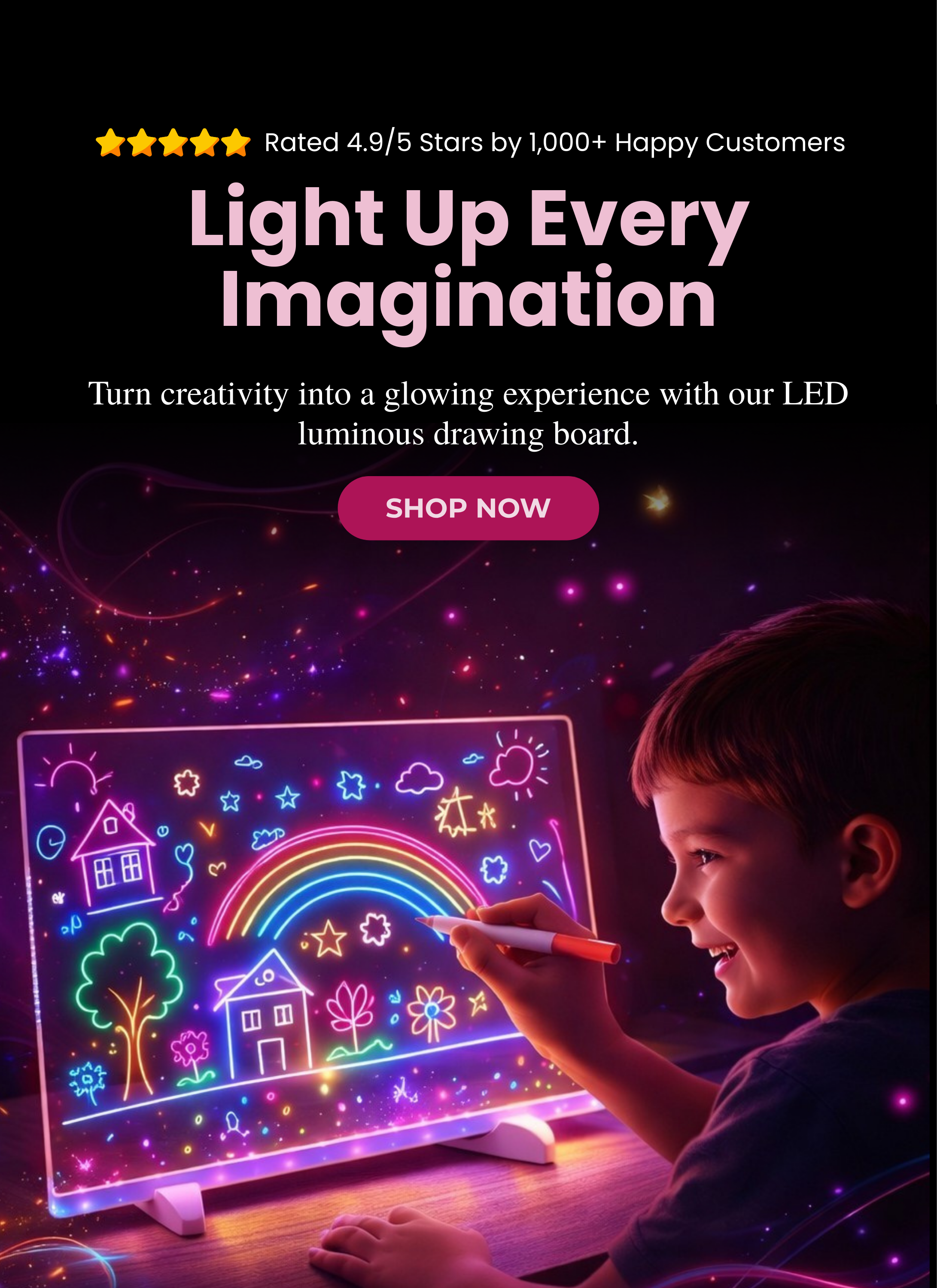 This is a light-up dry erase drawing board designed to let children create glowing drawings in low-light conditions, combining creativity with interactive play.